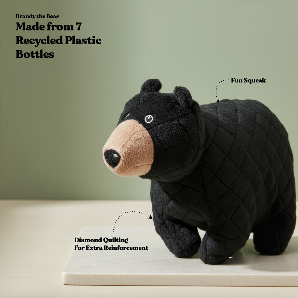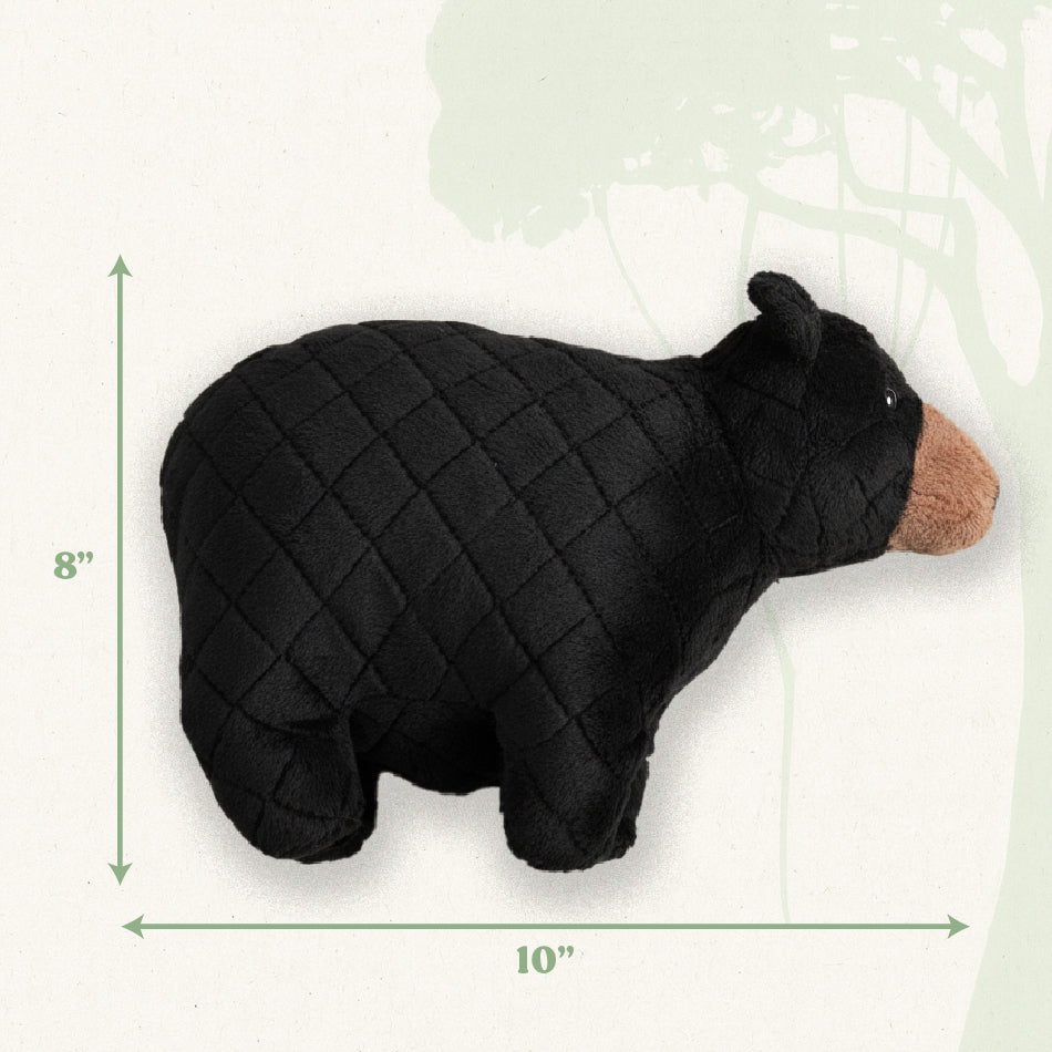 Black Bears’ coats vary from a lustrous black all the way to a rich honey-brown and they can weigh up to 500 lbs. Our version is a pure black with a brown-sugar snout and measures 10”, which makes it perfect for larger dogs like goldens and labs.